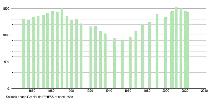 - ↑ Population municipale de référence en vigueur au 1er janvier 2025, millésimée 2022, définie dans les limites territoriales en vigueur au 1er janvier 2024, date de référence statistique : 1er janvier 2022.