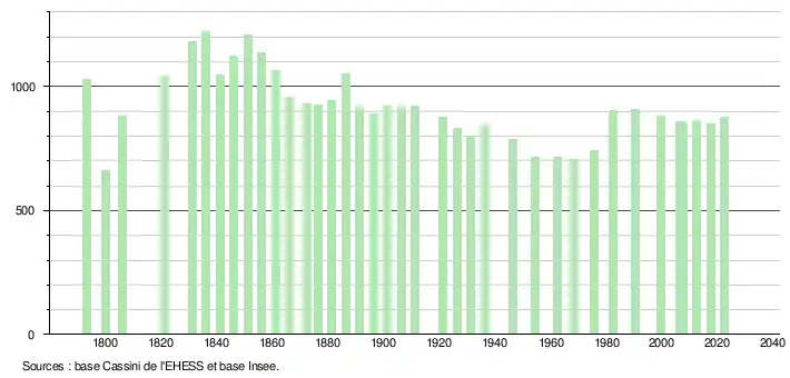 - ↑ Fiches Insee - Populations de référence de la commune pour les années 2006, 2007, 2008, 2009, 2010, 2011, 2012, 2013, 2014, 2015, 2016, 2017, 2018, 2019, 2020, 2021 et 2022.
