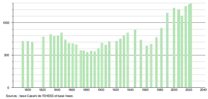 - ↑ Fiches Insee - Populations de référence de la commune pour les années 2006, 2007, 2008, 2009, 2010, 2011, 2012, 2013, 2014, 2015, 2016, 2017, 2018, 2019, 2020, 2021 et 2022.