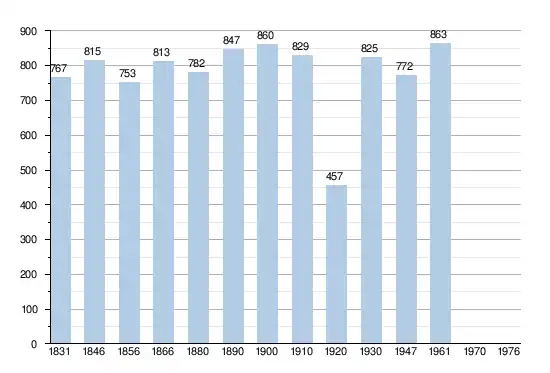 - Sources : INS, Rem. : 1831 jusqu'en 1970 = recensements, 1976 = nombre d'habitants au 31 décembre[2].