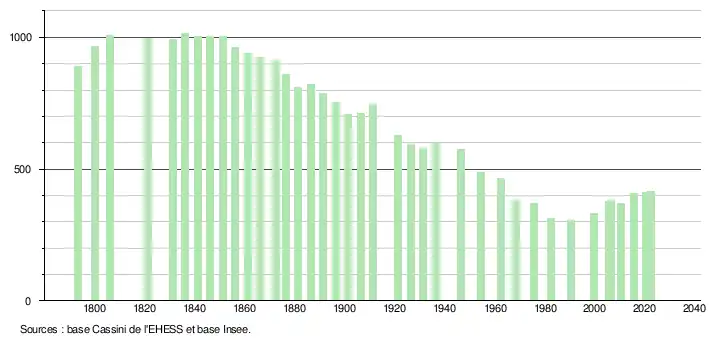 | Rang de la commune dans le département | 210 | 197 | 240 | 280 | 267 | 267 | 282 | 283 |