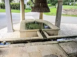 Blason | Écartelé : au 1er d'or à trois demi-ramures de sable posées en fasce et rangées en pal, au 2e de gueules à deux bars adossés d'or, au 3e de gueules au temple du lieu d'or ouvert et ajouré de sable, au 4e d'or à la fontaine-lavoir du lieu de sable[21]. |