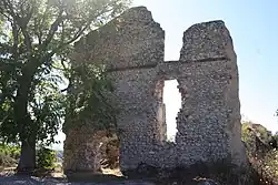 La chapelle Saint-Georges dans le cimetière[55], avec une nef de trois travées voûtées d’un faux berceau au XVIIIe siècle et une abside voûtée en cul-de-four. Originellement, l’entrée se faisait par le portail sud, aujourd’hui bouché. Le mur sud et l’abside, en petit appareil régulier et en galets, datent du début du XIIe siècle. Outre la reconstruction de la voûte, la chapelle a été restaurée en 1978[56] puis à nouveau en 1989[26].