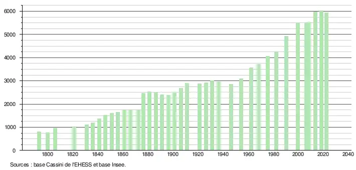 - ↑ Population municipale de référence en vigueur au 1er janvier 2025, millésimée 2022, définie dans les limites territoriales en vigueur au 1er janvier 2024, date de référence statistique : 1er janvier 2022.