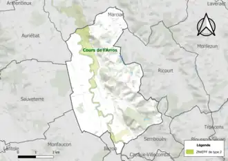 Une ZNIEFF de type 2[Note 1] est recensée sur la commune[14] : le « cours de l'Arros » (1 675 ha), couvrant 41 communes dont 20 dans le Gers et 21 dans les Hautes-Pyrénées[15].