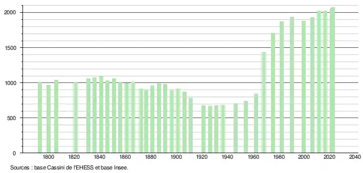 - ↑ Fiches Insee - Populations de référence de la commune pour les années 2006, 2007, 2008, 2009, 2010, 2011, 2012, 2013, 2014, 2015, 2016, 2017, 2018, 2019, 2020, 2021 et 2022.