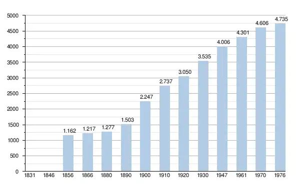 - Sources : INS, Rem. : 1831 jusqu'en 1970 = recensements, 1976 = nombre d'habitants au 31 décembre[2].