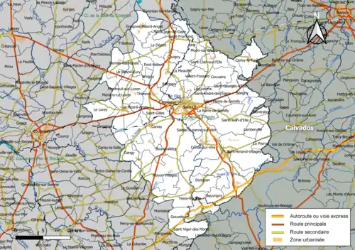 Située dans le centre-est du département de la Manche, l'intercommunalité Saint-Lô Agglo regroupe 61 communes et s'étend sur 819,9 km2[9]. Elle est composées des trois communes de l'unité urbaine de Saint-Lô et des cinquante-et-une communes de l'aire urbaine de Saint-Lô.