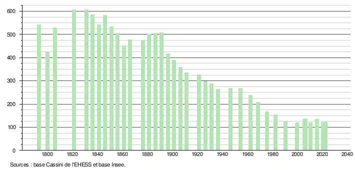- ↑ Population municipale de référence en vigueur au 1er janvier 2025, millésimée 2022, définie dans les limites territoriales en vigueur au 1er janvier 2024, date de référence statistique : 1er janvier 2022.