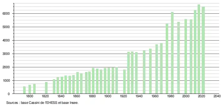 - ↑ Population municipale de référence en vigueur au 1er janvier 2025, millésimée 2022, définie dans les limites territoriales en vigueur au 1er janvier 2024, date de référence statistique : 1er janvier 2022.