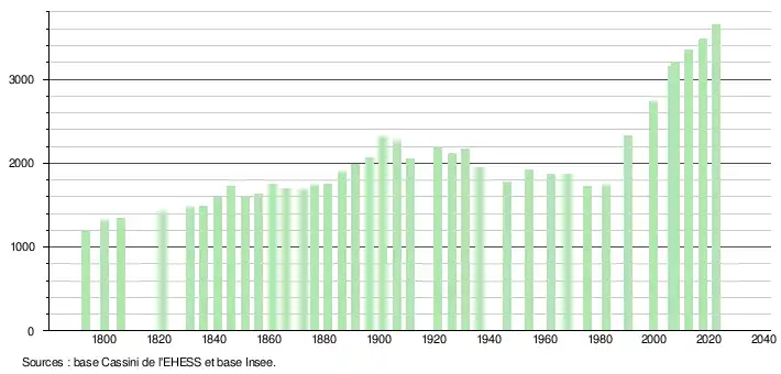 - ↑ Fiches Insee - Populations de référence de la commune pour les années 2006, 2007, 2008, 2009, 2010, 2011, 2012, 2013, 2014, 2015, 2016, 2017, 2018, 2019, 2020, 2021 et 2022.