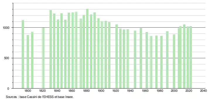 - ↑ Fiches Insee - Populations de référence de la commune pour les années 2006, 2007, 2008, 2009, 2010, 2011, 2012, 2013, 2014, 2015, 2016, 2017, 2018, 2019, 2020, 2021 et 2022.