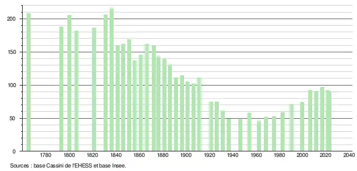 - ↑ Fiches Insee - Populations de référence de la commune pour les années 2006, 2007, 2008, 2009, 2010, 2011, 2012, 2013, 2014, 2015, 2016, 2017, 2018, 2019, 2020, 2021 et 2022.