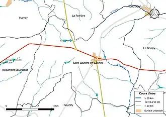 - ↑ « Carte hydrologique de Saint-Laurent-en-Gâtines », sur geoportail.gouv.fr (consulté le ).
