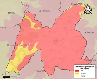 Le retrait-gonflement des sols argileux est susceptible d'engendrer des dommages importants aux bâtiments en cas d’alternance de périodes de sécheresse et de pluie. La totalité de la commune est en aléa moyen ou fort (90,2 % au niveau départemental et 48,5 % au niveau national). Sur les 402 bâtiments dénombrés sur la commune en 2019, 402 sont en aléa moyen ou fort, soit 100 %, à comparer aux 91 % au niveau départemental et 54 % au niveau national. Une cartographie de l'exposition du territoire national au retrait gonflement des sols argileux est disponible sur le site du BRGM[19],[20].