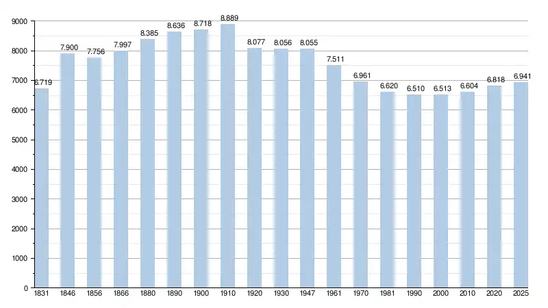 - Sources : INS, Rem. : 1831 jusqu'en 1970 = recensements, 1976 = nombre d'habitants au 31 décembre[3].