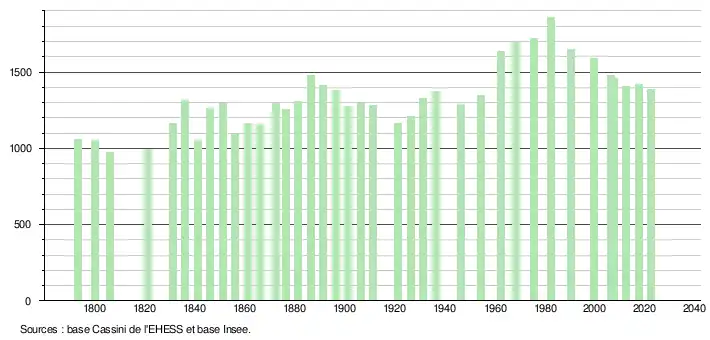 1 384 hab. (2022 en évolution de −2,4 % par rapport à 2016)