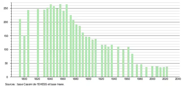 | Rang de la commune dans le département | 403 | 549 | 563 | 563 | 542 | 566 | 566 | 572 |