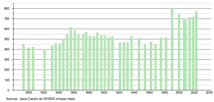 - ↑ Fiches Insee - Populations de référence de la commune pour les années 2006, 2007, 2008, 2009, 2010, 2011, 2012, 2013, 2014, 2015, 2016, 2017, 2018, 2019, 2020, 2021 et 2022.