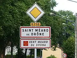 - ↑ Le nom occitan des communes du Périgord - Sent Meard de Drona sur le site du Conseil général de la Dordogne, consulté le .