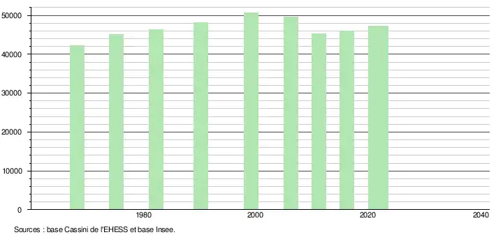 ↑ Population municipale de référence en vigueur au 1erjanvier2025, millésimée 2022, définie dans les limites territoriales en vigueur au 1erjanvier2024, date de référence statistique: 1erjanvier2022.