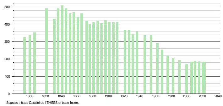 - ↑ Population municipale de référence en vigueur au 1er janvier 2025, millésimée 2022, définie dans les limites territoriales en vigueur au 1er janvier 2024, date de référence statistique : 1er janvier 2022.