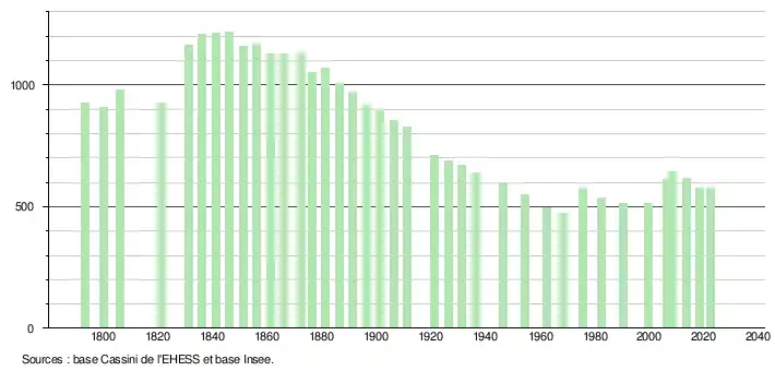 - ↑ Fiches Insee - Populations de référence de la commune pour les années 2006, 2007, 2008, 2009, 2010, 2011, 2012, 2013, 2014, 2015, 2016, 2017, 2018, 2019, 2020, 2021 et 2022.