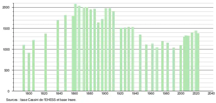 - ↑ Fiches Insee - Populations de référence de la commune pour les années 2006, 2007, 2008, 2009, 2010, 2011, 2012, 2013, 2014, 2015, 2016, 2017, 2018, 2019, 2020, 2021 et 2022.