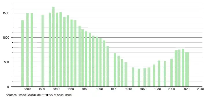 - ↑ Fiches Insee - Populations de référence de la commune pour les années 2006, 2007, 2008, 2009, 2010, 2011, 2012, 2013, 2014, 2015, 2016, 2017, 2018, 2019, 2020, 2021 et 2022.
