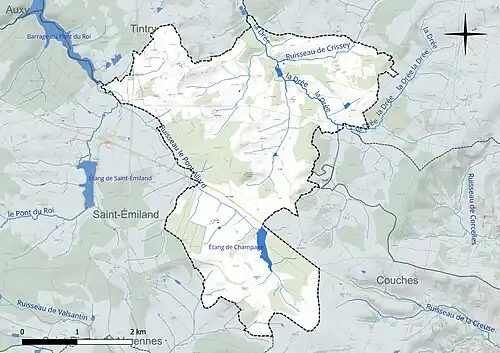 Les communes limitrophes sont Collonge-la-Madeleine, Couches, Dracy-lès-Couches, Saint-Gervais-sur-Couches, Saint-Émiland et Tintry.