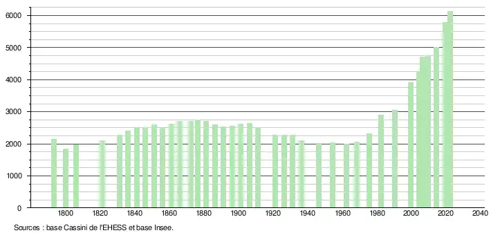 - ↑ Fiches Insee - Populations de référence de la commune pour les années 2006, 2007, 2008, 2009, 2010, 2011, 2012, 2013, 2014, 2015, 2016, 2017, 2018, 2019, 2020, 2021 et 2022.