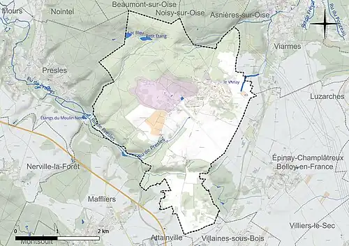 Les communes limitrophes sont Asnières-sur-Oise, Belloy-en-France, Maffliers, Noisy-sur-Oise, Presles, Viarmes et Villaines-sous-Bois.