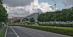 L'emplacement de la future station, vu en février 2023. Le bureau d'études d'Airbus est visible en arrière-plan. | ||||||||