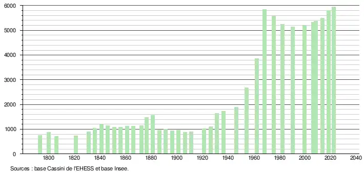 - ↑ Population municipale de référence en vigueur au 1er janvier 2025, millésimée 2022, définie dans les limites territoriales en vigueur au 1er janvier 2024, date de référence statistique : 1er janvier 2022.