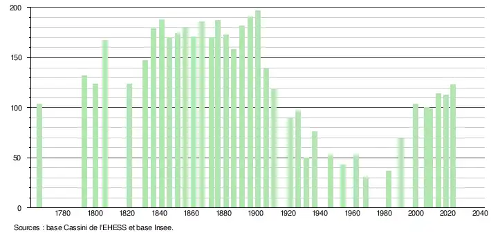 - ↑ Fiches Insee - Populations de référence de la commune pour les années 2006, 2007, 2008, 2009, 2010, 2011, 2012, 2013, 2014, 2015, 2016, 2017, 2018, 2019, 2020, 2021 et 2022.