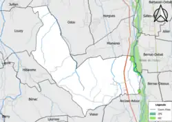 Les communes les plus proches[Note 1] sont[3] : Arcizac-Adour (1,1 km), Bernac-Debat (1,9 km), Momères (1,9 km), Bernac-Dessus (2,3 km), Salles-Adour (2,7 km), Vielle-Adour (2,9 km), Horgues (3,0 km), Visker (3,1 km).