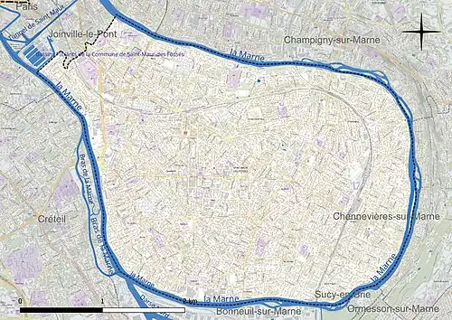 Les communes limitrophes sont Bonneuil-sur-Marne, Champigny-sur-Marne, Chennevières-sur-Marne, Créteil, Joinville-le-Pont, Maisons-Alfort et Sucy-en-Brie.