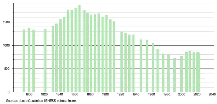 - ↑ Fiches Insee - Populations de référence de la commune pour les années 2006, 2007, 2008, 2009, 2010, 2011, 2012, 2013, 2014, 2015, 2016, 2017, 2018, 2019, 2020, 2021 et 2022.