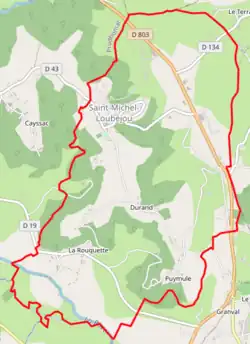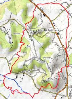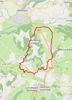 - ↑ « Orthodromie entre Saint-Michel-Loubéjou et Camps-Saint-Mathurin-Léobazel », sur fr.distance.to (consulté le ).