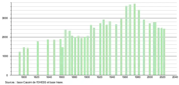 - ↑ Population municipale de référence en vigueur au 1er janvier 2025, millésimée 2022, définie dans les limites territoriales en vigueur au 1er janvier 2024, date de référence statistique : 1er janvier 2022.