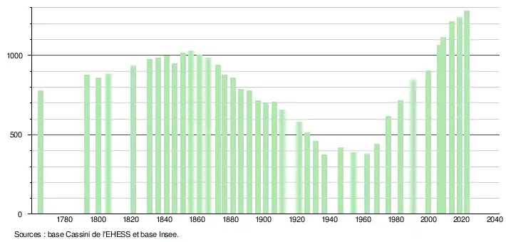 1 278 hab. (2022 en évolution de +3,15 % par rapport à 2016)