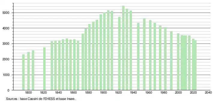 - ↑ Population municipale de référence en vigueur au 1er janvier 2025, millésimée 2022, définie dans les limites territoriales en vigueur au 1er janvier 2024, date de référence statistique : 1er janvier 2022.