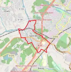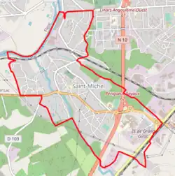 Plus petite commune du Grand Angoulême en superficie, Saint-Michel est située à 4 km à l'ouest d'Angoulême[2], sur la rive gauche de la Charente.