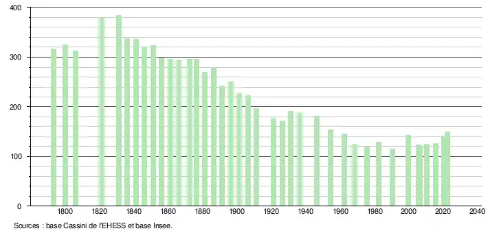 - ↑ Fiches Insee - Populations de référence de la commune pour les années 2006, 2007, 2008, 2009, 2010, 2011, 2012, 2013, 2014, 2015, 2016, 2017, 2018, 2019, 2020, 2021 et 2022.