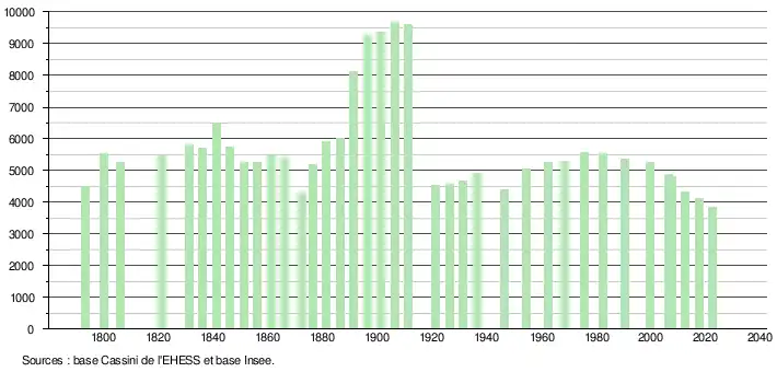 - ↑ Fiches Insee - Populations de référence de la commune pour les années 2006, 2007, 2008, 2009, 2010, 2011, 2012, 2013, 2014, 2015, 2016, 2017, 2018, 2019, 2020, 2021 et 2022.