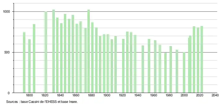 - ↑ Fiches Insee - Populations de référence de la commune pour les années 2006, 2007, 2008, 2009, 2010, 2011, 2012, 2013, 2014, 2015, 2016, 2017, 2018, 2019, 2020, 2021 et 2022.