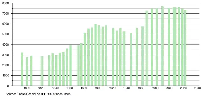 - ↑ Population municipale de référence en vigueur au 1er janvier 2025, millésimée 2022, définie dans les limites territoriales en vigueur au 1er janvier 2024, date de référence statistique : 1er janvier 2022.