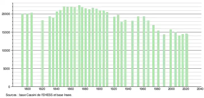 14 358 hab. (2022 en évolution de −0,59 % par rapport à 2016)
