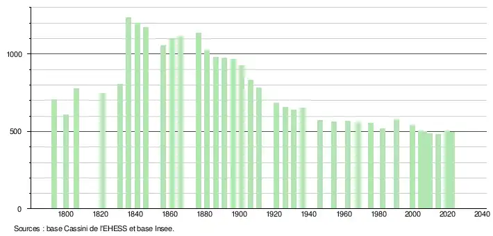 - ↑ Fiches Insee - Populations de référence de la commune pour les années 2006, 2007, 2008, 2009, 2010, 2011, 2012, 2013, 2014, 2015, 2016, 2017, 2018, 2019, 2020, 2021 et 2022.