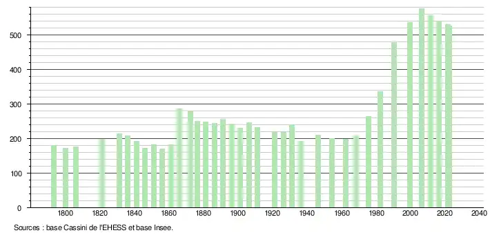 - ↑ Fiches Insee - Populations de référence de la commune pour les années 2006, 2007, 2008, 2009, 2010, 2011, 2012, 2013, 2014, 2015, 2016, 2017, 2018, 2019, 2020, 2021 et 2022.